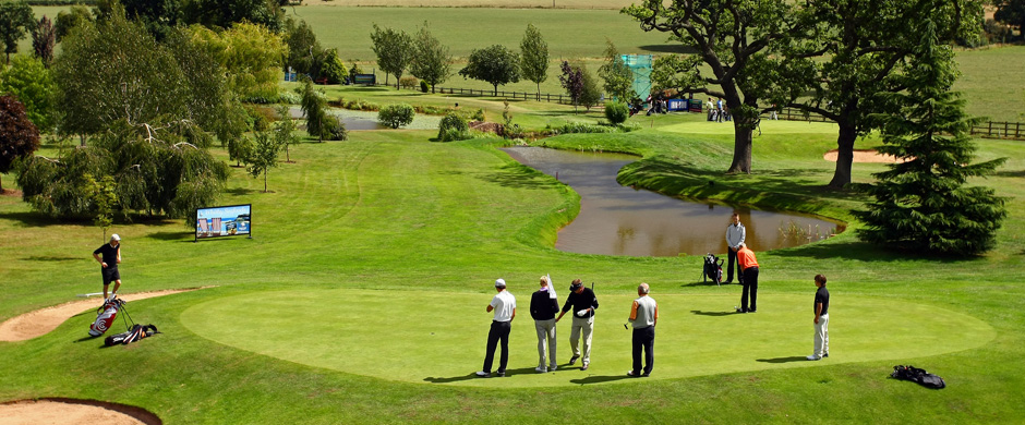 The beautiful Nailcote Hall Par 3 Championship course in full bloom. We have made many improvements to the course this year including a completely new lake and stream feature in addition to our established lake pictured here.